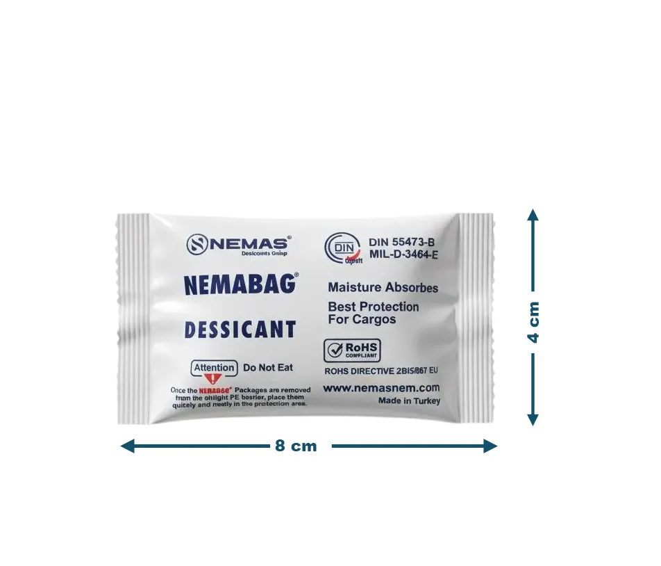 NEMABAG® Mini; kapalı alanlar içindeki nem tahribatını önlemek için basit, güvenilir ve ekonomik çözümler sunar. İşlenmiş endüstriyel zeolitten oluşan nem alıcı paketler, ihracat ürünleri ve diğer kapalı alanlarda kuru bir ortam sağlayarak ürünleri koruma altına alır.